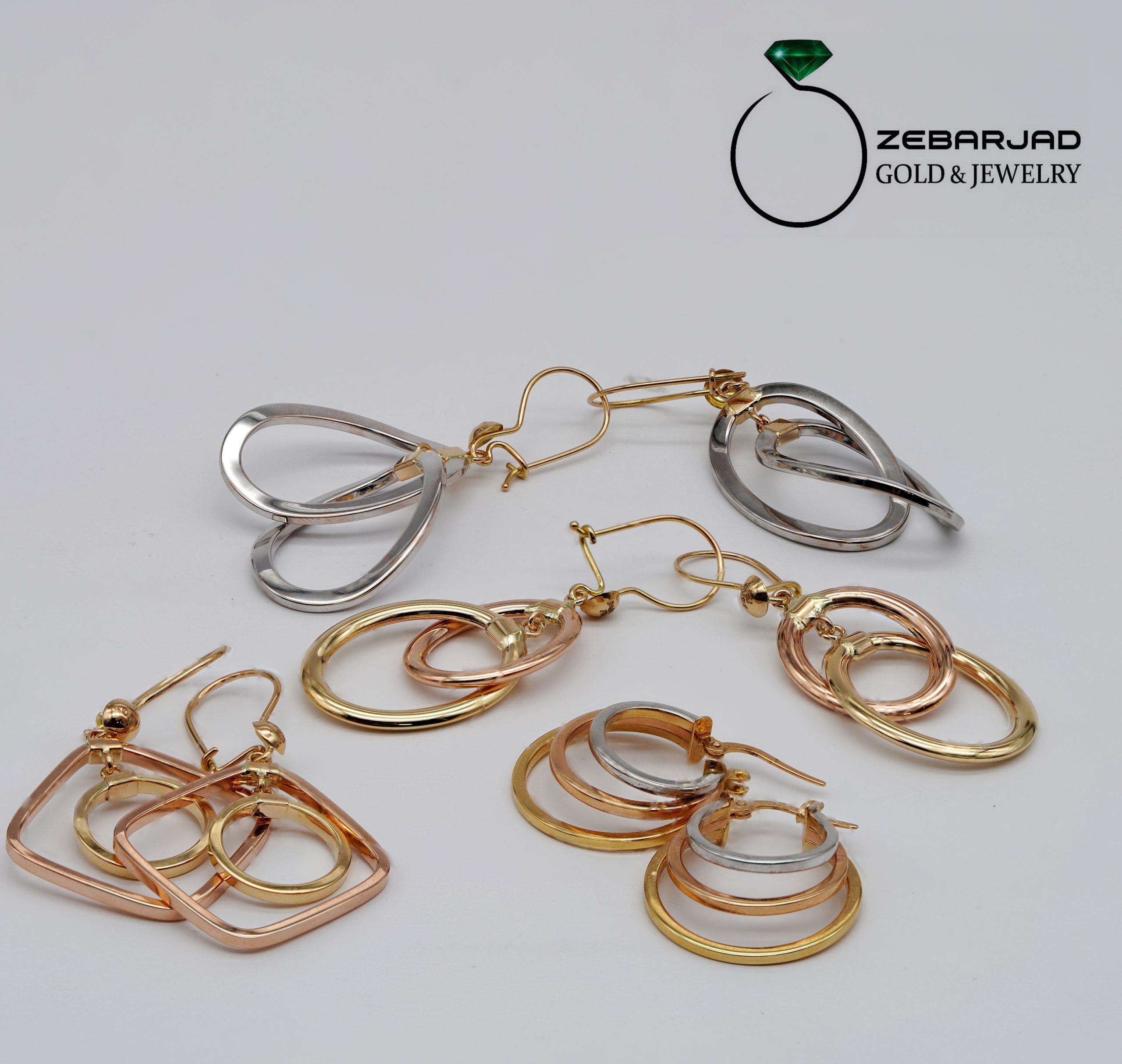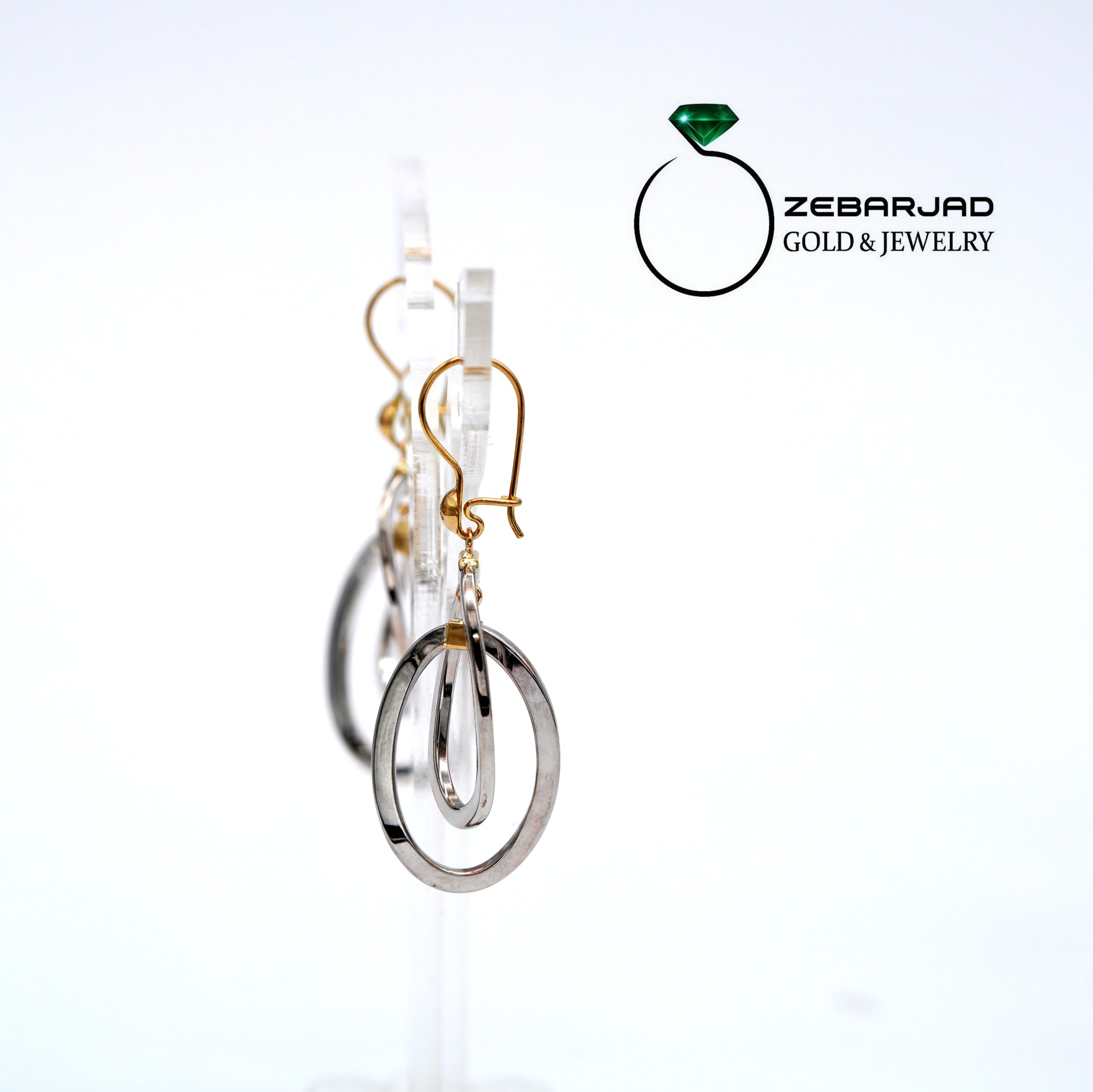 گوشواره طرح ترک، مدلی خاص و چشمگیر شامل حلقههای بزرگ توخالی در اشکال هندسی متنوع، با رنگهای ترکیبی یا تکرنگ.